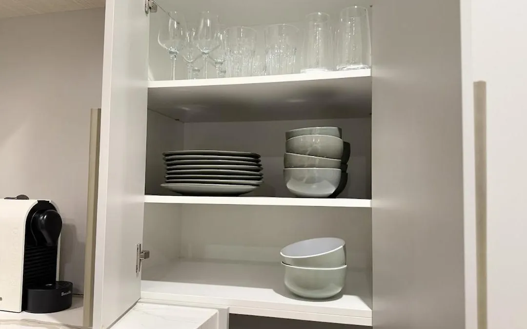 El apartamento ofrece mayor comodidad con una ducha y una lavadora.